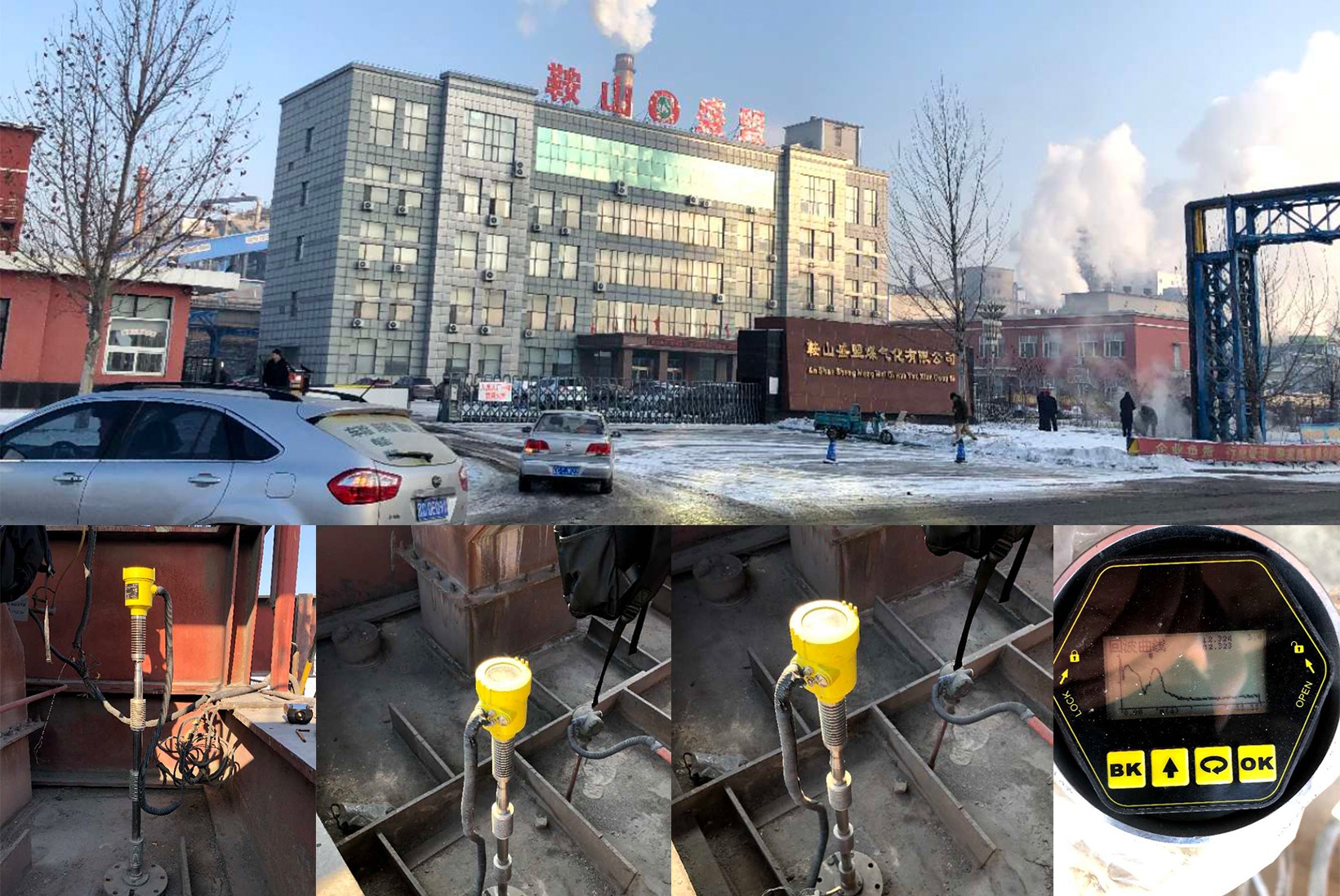 • 山東鋁業該現場主要主要以測量污水、水泥漿液為主,大多部多有攪拌、蒸汽,選購 RBRD17 共計 32 臺。罐內有攪拌槳,攪拌槳一下液位無法測量,因雷達安裝正下方是有攪拌葉片,且葉片寬度、層數比較多,所以無法測量。現場蒸汽比較大。現場安裝圖。現場安裝圖,安裝位置為罐子直徑四分之一處。現場安裝圖。現場環境圖。現場安裝圖